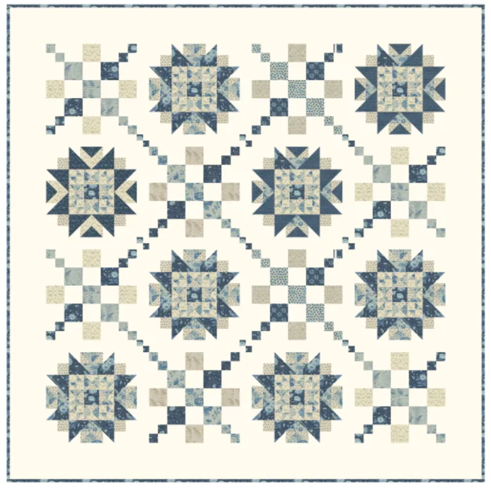 Discover the timeless elegance with the Blue De France Pattern by Aria & Ava showcasing the stunning Sacre Bleu fabric designed by French General for Moda Fabrics. This fabric collection features sophisticated patterns and rich tones inspired by classic French style, bringing a touch of refinement to your next quilting project. This quilt design is similar to the one we did before, but with new fabrics that add a fresh and unique look while maintaining the charm of the original. Bleu de France pattern and fabrics to complete the 70×70″ quilt top and binding.