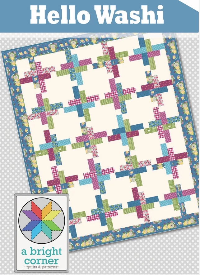 Hello Washi by A Bright Corner- This fun pattern is charm pack and jelly roll friendly! No pre-cuts on hand? No problem. Fabric requirements are also given in yardage for those that prefer to choose fabrics that way. Finished quilt sizes: **all sizes are included in this one pattern** Baby 46″ x 46″, Throw 59″ x 72″, Twin 72″ x 85″, Queen 85″ x 85″ This is a beginner to intermediate level pattern.