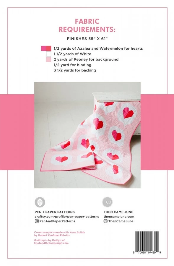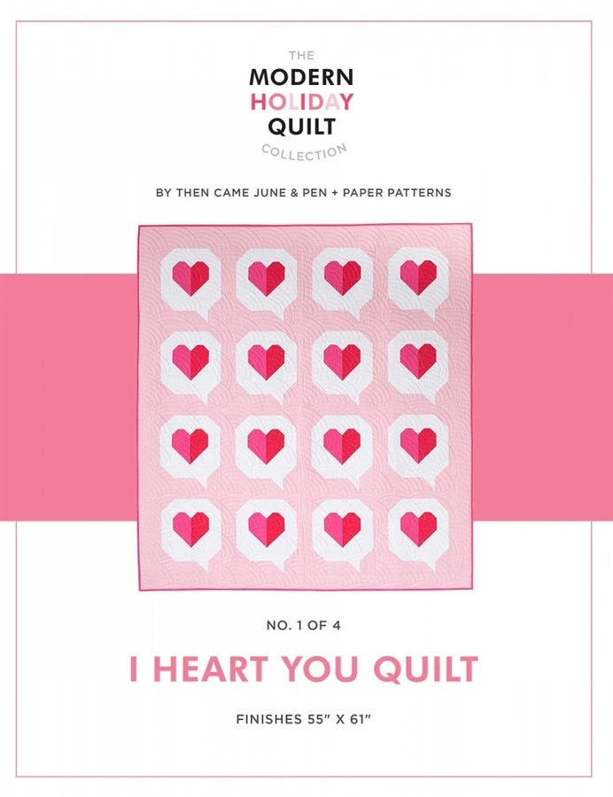 Then Came June, I Heart You Quilt- A fresh take on a classic heart quilt. These little heart message bubbles are inspired by getting a text from a loved one. It is block based, beginner friendly and finishes at 55in x 61in.