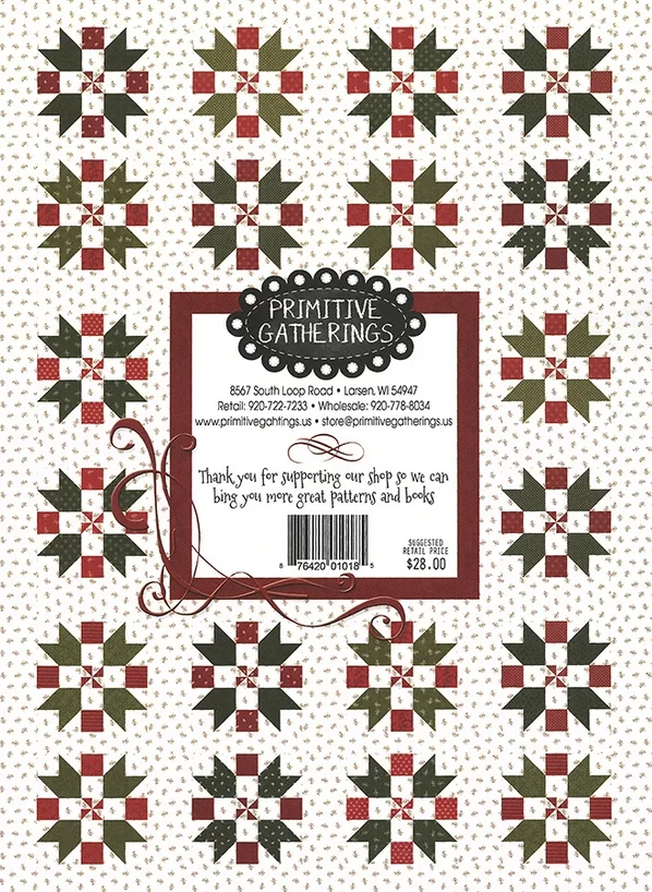 Joyful Gatherings by Lisa Bongean of Primitive Gatherings- brings you fantastic joy-filled projects made with the holiday hues of Joyful Gatherings by Primitive Gatherings for Moda Fabrics. you’ll be able to decorate the whole house for the season with patterns for quilts, stockings, garland, table mats and more.