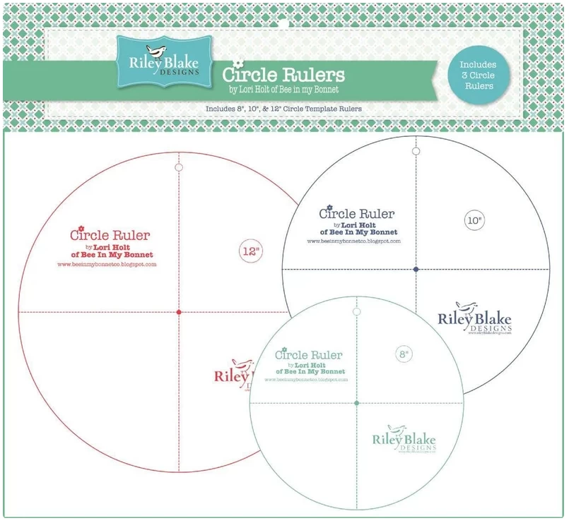Lori Holt Circle Ruler Set- great for rotary cutting or template tracing. Set includes 3 rulers (8in, 10in and 12in).