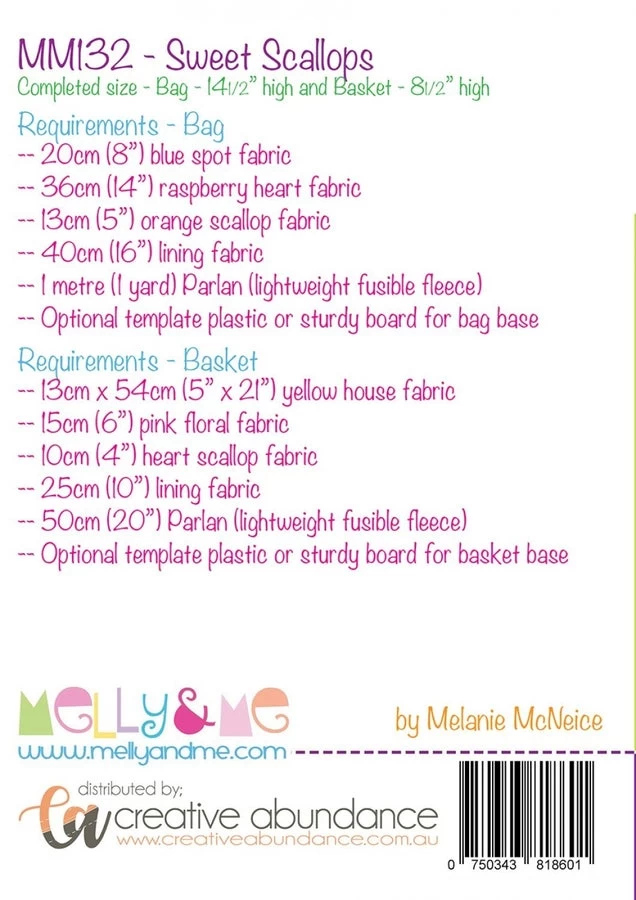 Sweet Scallops Bag & Basket- both of these items are so practical and lend themselves to a wide variety of fabrics! These baskets would be perfect for Easter eggs. Completed size – Bag 14 1/2″ high & Basket 8 1/2″ high.