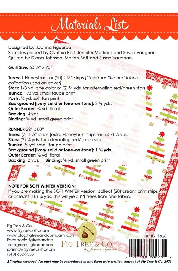 Fig Tree & Co., Yuletide Spruce- finished quilt is 60.5 x 70″, use traditional red and green or mix it up and make it scrappy!